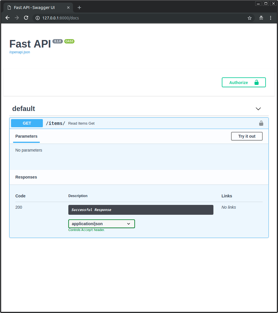 Перейдите к интерактивной документации по адресу: http://127.0.0.1:8000/docs.
